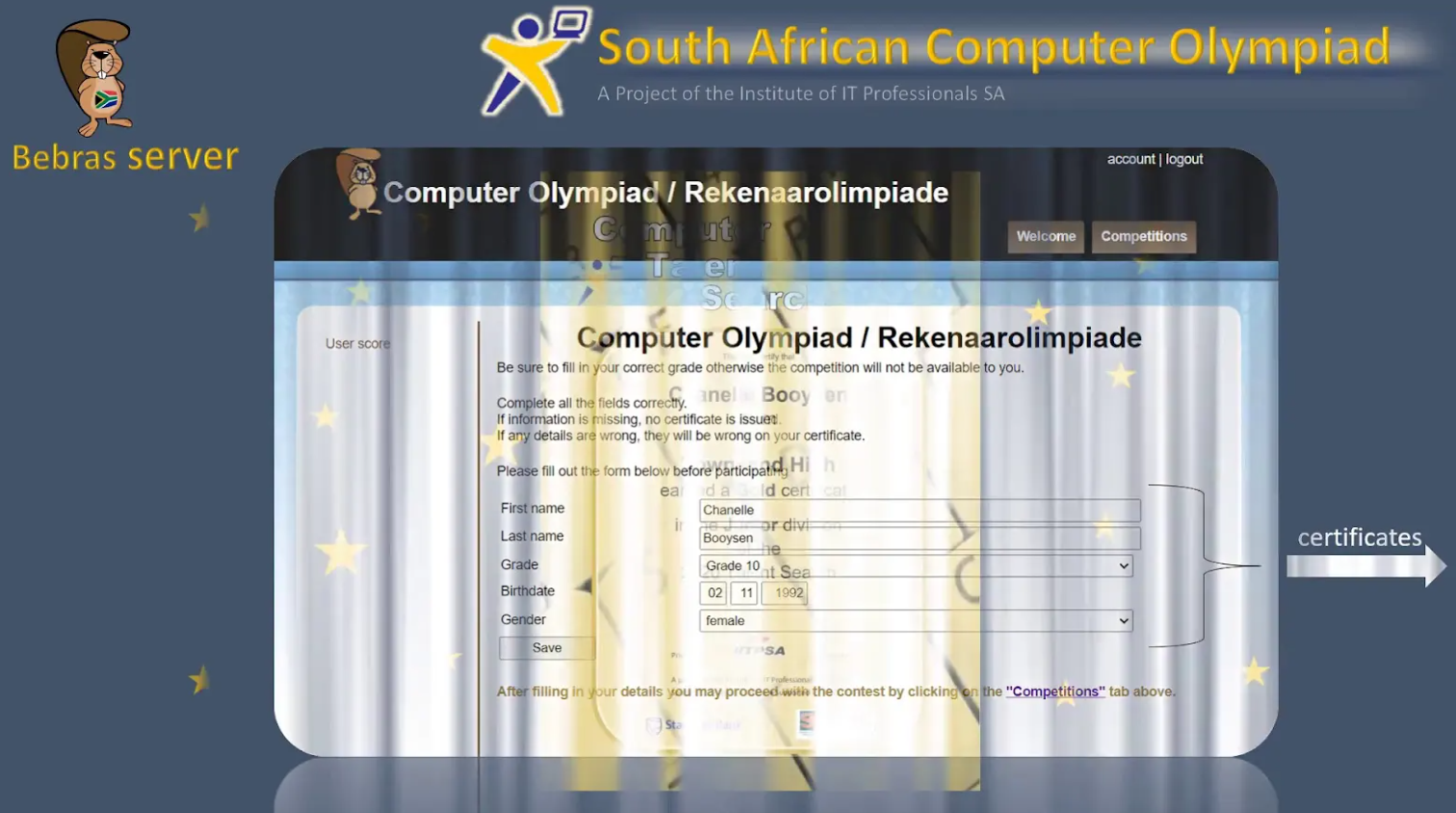 - Remind learners that the first name, last name and grade they enter will appear on the certificates. Remind learners not to misspell their name or accidently enter an incorrect grade.